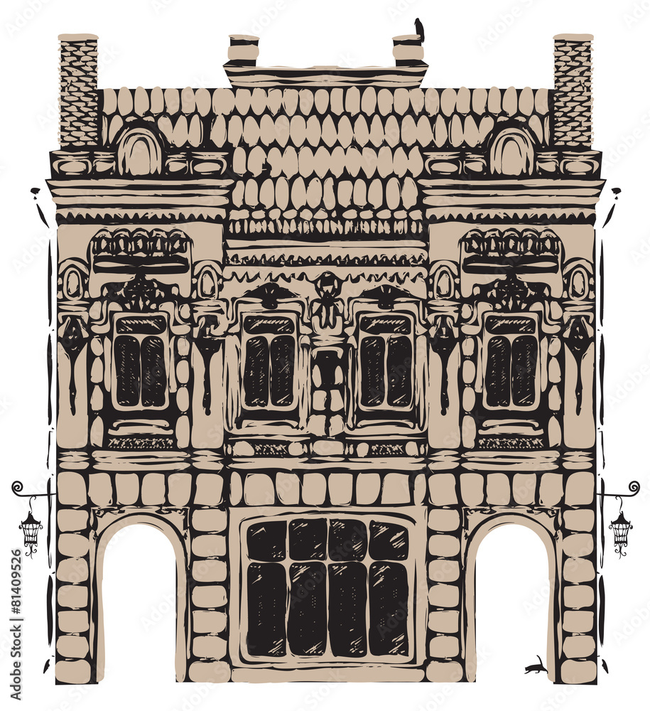 Vector Drawing Of The Old European Two Storey House Stock Vector Adobe Stock
